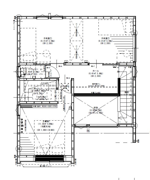 ●2階の子供部屋は、間仕切りなしの広々空間